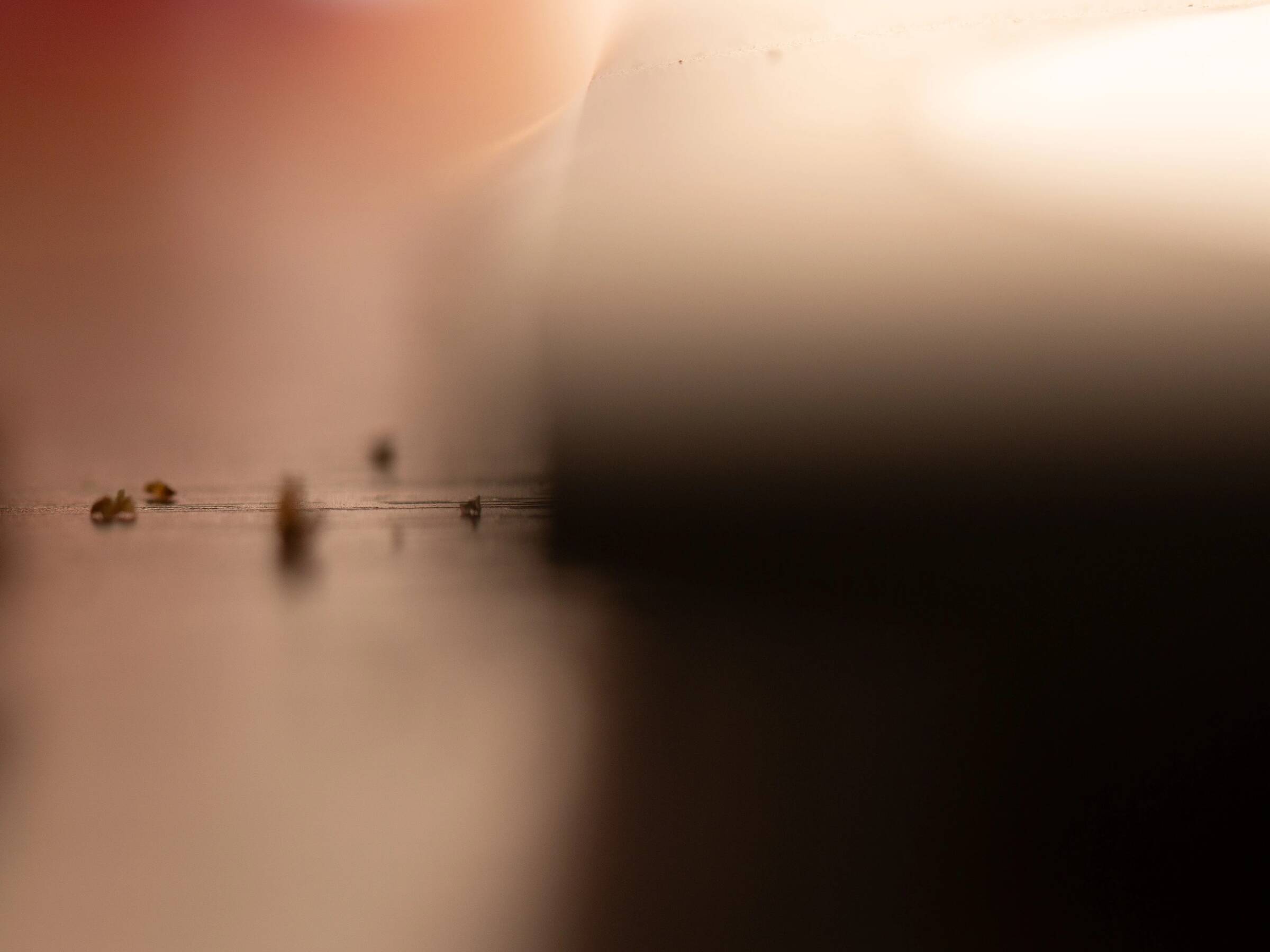 Die im letzten Raum ausgestellte Arbeit Untitled (The way back), 2025, ordnet 81 fotografische Aufnahmen innerhalb eines Kodak-Diakarussels zu einer fortlaufenden Sequenz. Die Arbeit greift das Motiv der Brotkrumen aus Märchen auf – als metaphorisches Hilfsmittel, das Orientierung bietet und den Weg (zurück nach Hause) weist. Die 81-teilige Arbeit wird so zu einer fotografischen Spurensuche (und Spurensicherung), die auch sich selbst nur als temporäre Lichtspur offenbart. So erscheinen Spuren des Alltags, die sich auf persönlichen Gegenständen und alltäglichen Gebrauchsobjekten formieren: auf Kleidungsstücken, Laptop, Handy sowie auf der Linse der Kamera. Das von Mavrokordatou gewählte Makroobjektiv ermöglicht eine detailreiche, zugleich aber auch abstrahierte Wahrnehmung der kleinen Partikel und eröffnet eine Annäherung an das, was gewöhnlich außerhalb direkter Reichweite und jenseits des eigenen Blickfeldes liegt. Durch die spezifische Funktionsweise des Diakarussels werden die projizierten Bilder dabei in eine sequenzielle Narration gebracht, die weder Anfang noch Ende besitzt und eine nicht fixierbare Erzählstruktur erzeugt. Im Gegensatz zur klassischen Logik des fotografischen Prinzips, das einen einzigen Moment erfasst und dauerhaft fixiert, entsteht vielmehr ein zyklisches Kontinuum: eine Schleife, die sich jeder abschließenden Vereindeutigung entzieht.