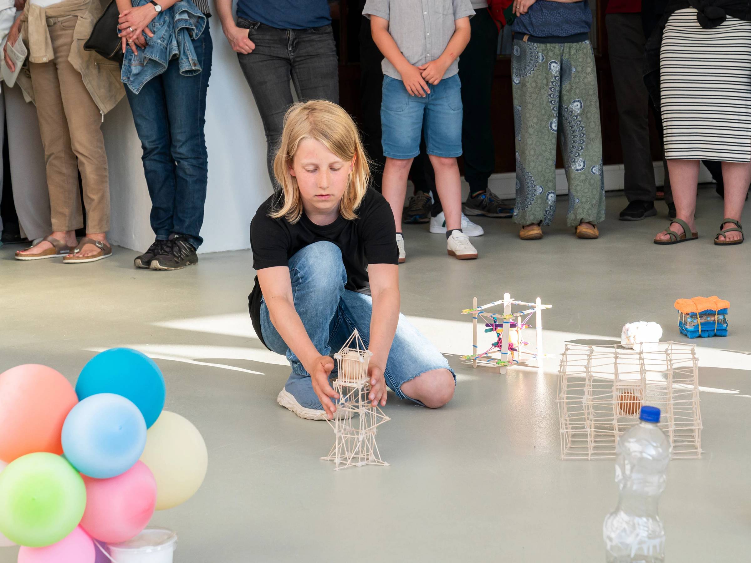 Wie schon im Titel der Ausstellung angelegt verweigert sich die Ausstellung we᾽re doing alien᾽s milk aren᾽t we? klaren Zuschreibungen und linearen Lesarten und verweist stattdessen vielmehr auf das Potential des Unbekannten, Nichterforschtem und Nicht-Rationalisierbarem. Es entstehen ästhetisch-experimentelle Möglichkeitsräume, in denen alternative Formen des Miteinanders und der Teilhabe imaginiert und erprobt werden können – jenseits von Beherrschung, Instrumentalisierung und normativen Zuschreibungen. Dies spiegelt sich nicht zuletzt in performativen Formaten wider, die in Kooperation mit der Künstlerin, dem StarterClub des Mecklenburgischen Staatstheaters und dem Kinderschutzbund Schwerin entstanden sind und die Ausstellung als Raum des (Ver-)Lernens in Perspektive setzen. Die erste Performance des StarterClubs – unter der Leitung der Theaterpädagogin Tina Koball – fand im Rahmen der Ausstellungseröffnung statt.